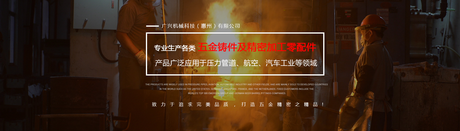 公司專業生產各類五金鑄件及精密加工零配件,可熔煉材質為全系列不銹鋼及碳鋼,主要生產材質有304316316L17-4、430409等,年生產各種不銹鋼鑄件1000余噸。產品廣泛應用于壓力管道、航空、汽車工業等領域,主要銷往美國、德國、新加坡、法國、荷蘭等世界發達國家,固定客戶有世界500強艾默生集團及德國啤酒桶配件公司。
